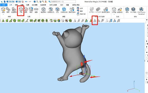 為了提高打印效果,往往我們需要對復雜模型進行分割變為簡單模型來打印,再進行拼裝。要對模型分割的話,推薦使用Magics來執行工作,這個軟件有數種切割方式,我們以最近很火的托舉貓模型為例子,介紹下其中常用的3種,內容較多,將分為2期內容說明。
