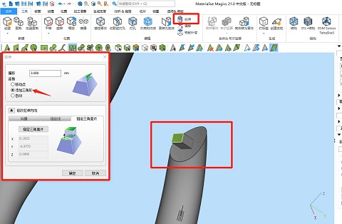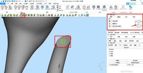 ⑤設計插銷,選擇“框選標記并重畫網格”功能,選擇一個模型的接觸面并框選出插銷大小和形狀。可以借助視圖工具頁來精準調節視圖方向。