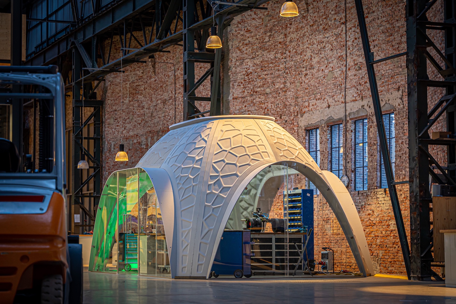 △為鹿特丹創(chuàng)客區(qū)設(shè)計的3D打印模塊化工作空間。圖片來自ARCHITECH公司。
