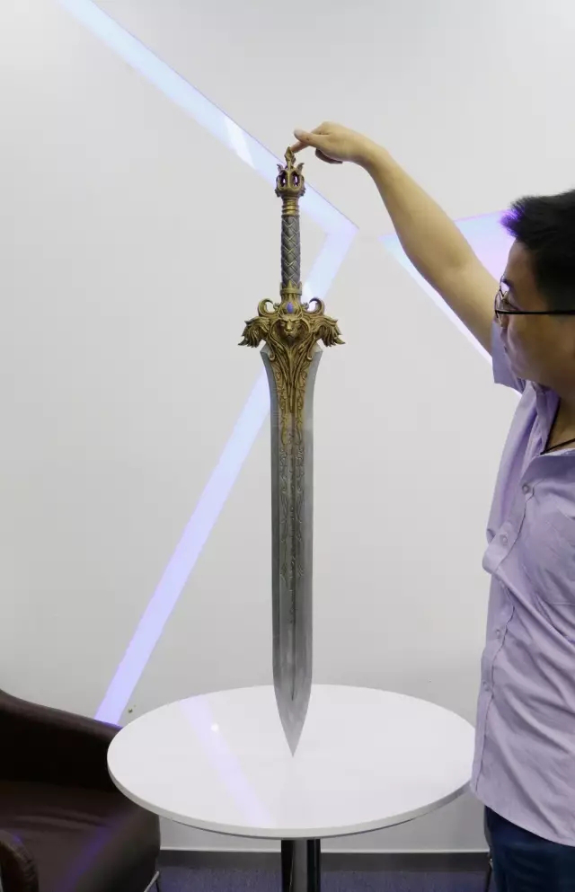 這把來自游戲魔獸世界經(jīng)典道具雄獅之牙的仿制品,是按照原型1:1打印再經(jīng)后期上色的,它不僅外觀看起來和游戲中的形象相同,而且細(xì)節(jié)處理得十分精致細(xì)膩,手感非常好,簡直是魔獸粉絲夢之道具。