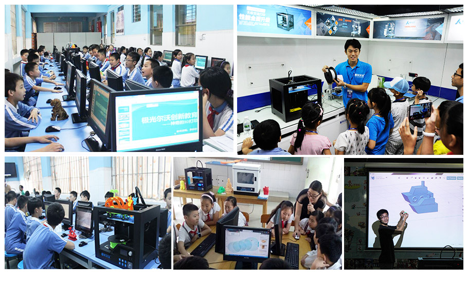 極光爾沃聘請(qǐng)專(zhuān)業(yè)教師團(tuán)隊(duì),建立3D創(chuàng)新教育實(shí)驗(yàn)室,基于3D打印的優(yōu)勢(shì)和特性,開(kāi)發(fā)出了一套體系化的符合目前